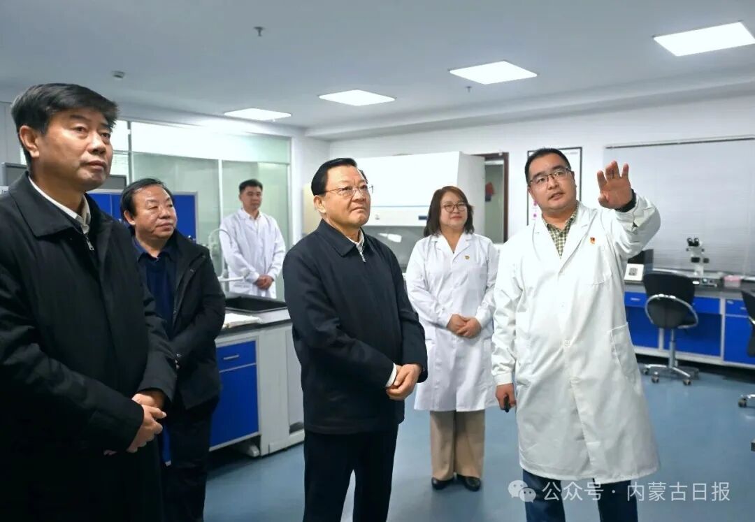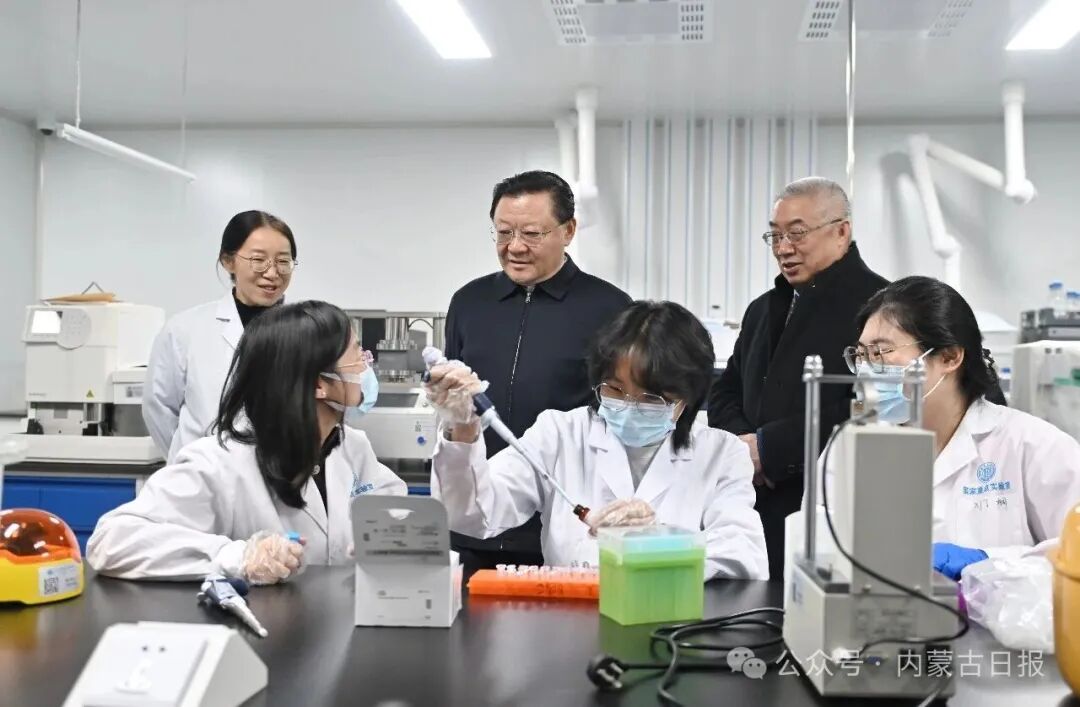 12月16日,自治區(qū)黨委書記王偉中來到畜牧研究所實(shí)驗(yàn)室,認(rèn)真了解科研平臺建設(shè)、技術(shù)攻關(guān)進(jìn)展。草原云·內(nèi)蒙古新聞網(wǎng)記者 馬建兵 攝