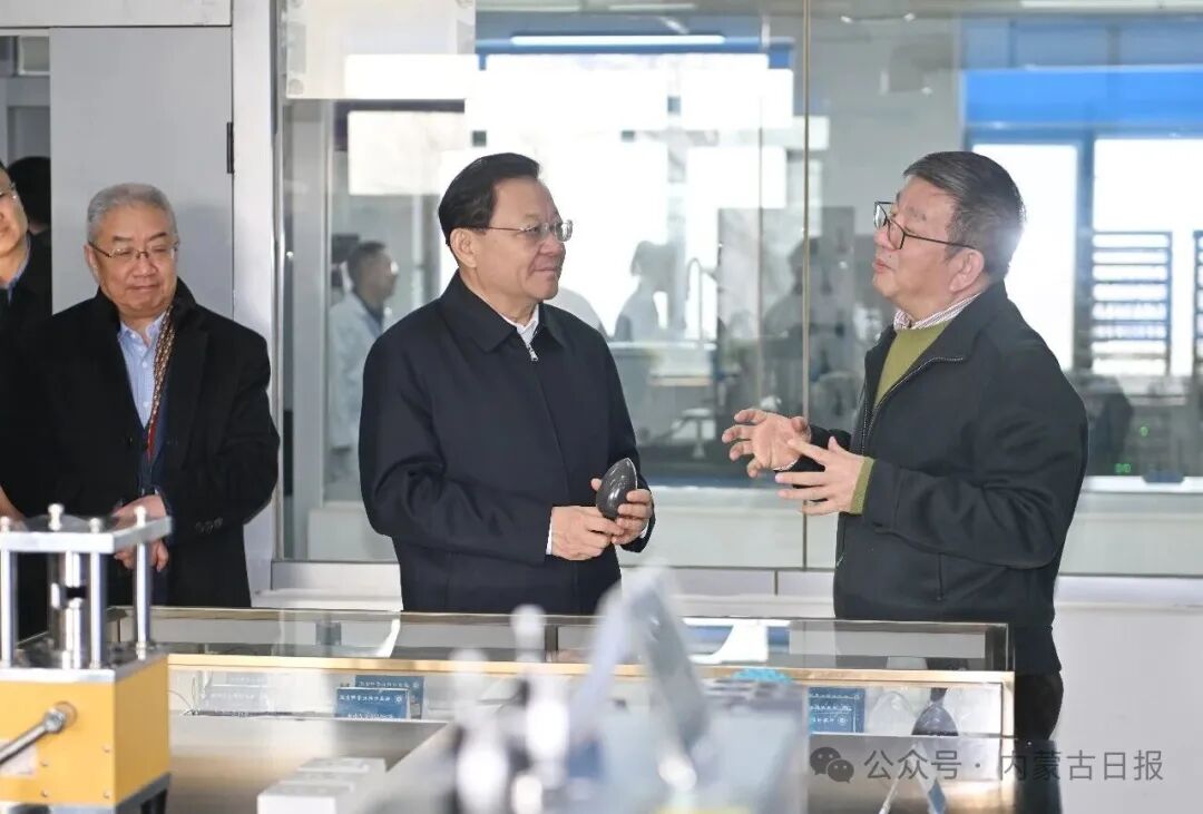 初冬的內(nèi)蒙古大學(xué)校園,薄雪覆蓋、朝氣涌動(dòng)。在省部共建草原家畜生殖調(diào)控與繁育國家重點(diǎn)實(shí)驗(yàn)室、功能介孔材料實(shí)驗(yàn)室,王偉中認(rèn)真聽取生物育種、高寒地區(qū)電池儲能系統(tǒng)研發(fā)等進(jìn)展情況介紹,與科研人員深入交流,關(guān)切詢問相關(guān)技術(shù)市場化應(yīng)用前景。他說,內(nèi)蒙古推進(jìn)科技創(chuàng)新,要堅(jiān)持有所為有所不為,聚焦特色產(chǎn)業(yè)和優(yōu)勢領(lǐng)域腳踏實(shí)地地干,一定大有作為。希望內(nèi)蒙古大學(xué)在“雙一流”建設(shè)中強(qiáng)化使命擔(dān)當(dāng),緊扣生物育種、草業(yè)乳業(yè)、儲能等優(yōu)勢特色學(xué)科,沉下心來攻克關(guān)鍵核心技術(shù),努力取得更多成果。要堅(jiān)持以科技創(chuàng)新需求為牽引,主動(dòng)與科研院所、創(chuàng)新平臺、頭部企業(yè)聯(lián)手,加大科研設(shè)施開放共享力度,引導(dǎo)更多有實(shí)力的企業(yè)投入研發(fā),推動(dòng)更多科研成果從實(shí)驗(yàn)室走向生產(chǎn)線。要廣開進(jìn)賢之路、廣納天下英才,做好筑巢引才、以才引才、為才搭臺工作,確保人才引進(jìn)來、留得住、用得好。在圖書館、蒙古文古籍文獻(xiàn)展閱室,王偉中仔細(xì)察看館藏文獻(xiàn),詳細(xì)詢問圖書文獻(xiàn)資源建設(shè)、研究開發(fā)等工作,叮囑有關(guān)部門要牢記習(xí)近平總書記殷切囑托,以鑄牢中華民族共同體意識為主線,切實(shí)加強(qiáng)對蒙古文古籍的搜集、整理與保護(hù),挖掘弘揚(yáng)蘊(yùn)含其中的民族團(tuán)結(jié)進(jìn)步思想內(nèi)涵,引導(dǎo)各族人民牢固樹立“四個(gè)與共”理念。