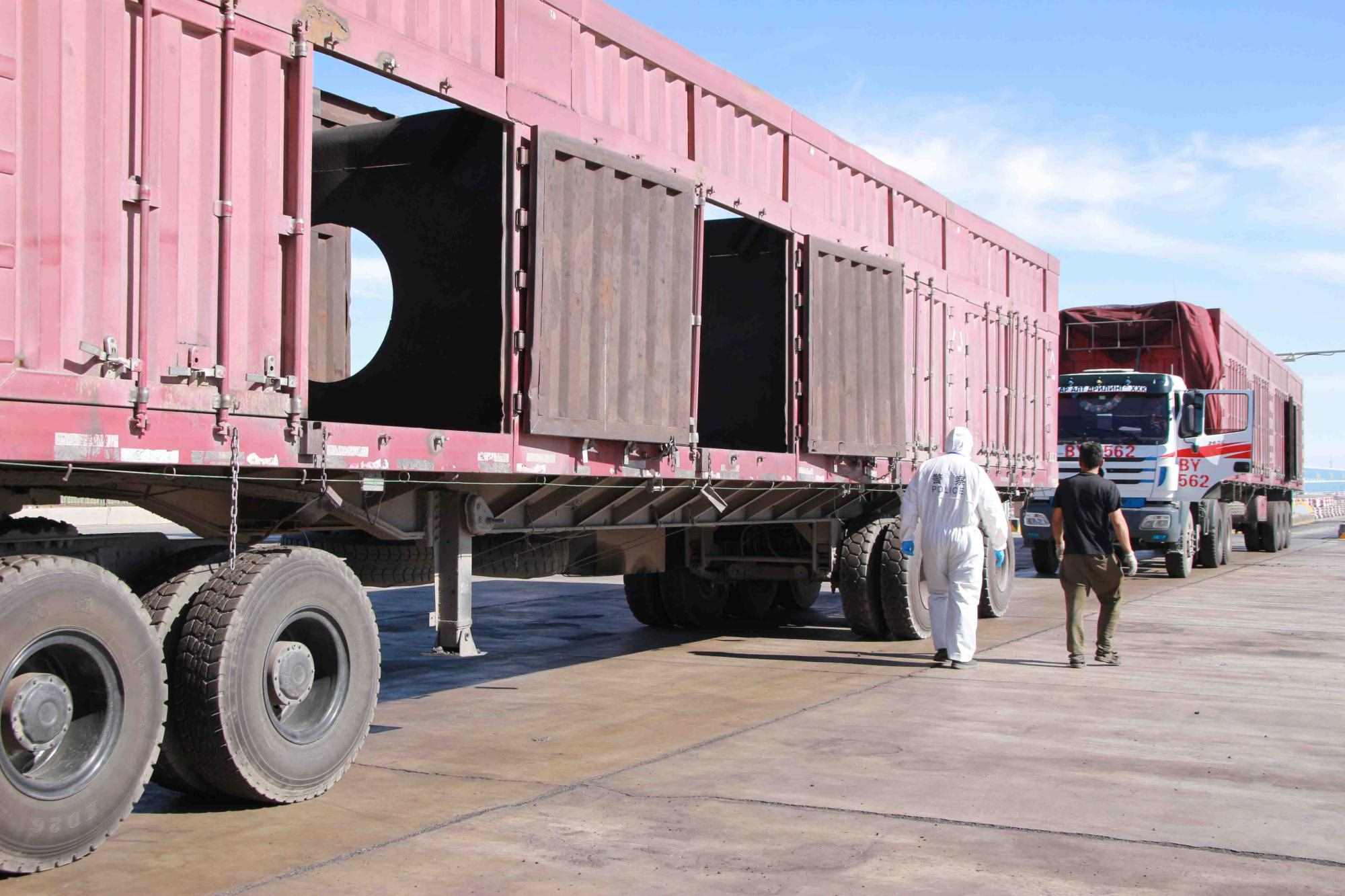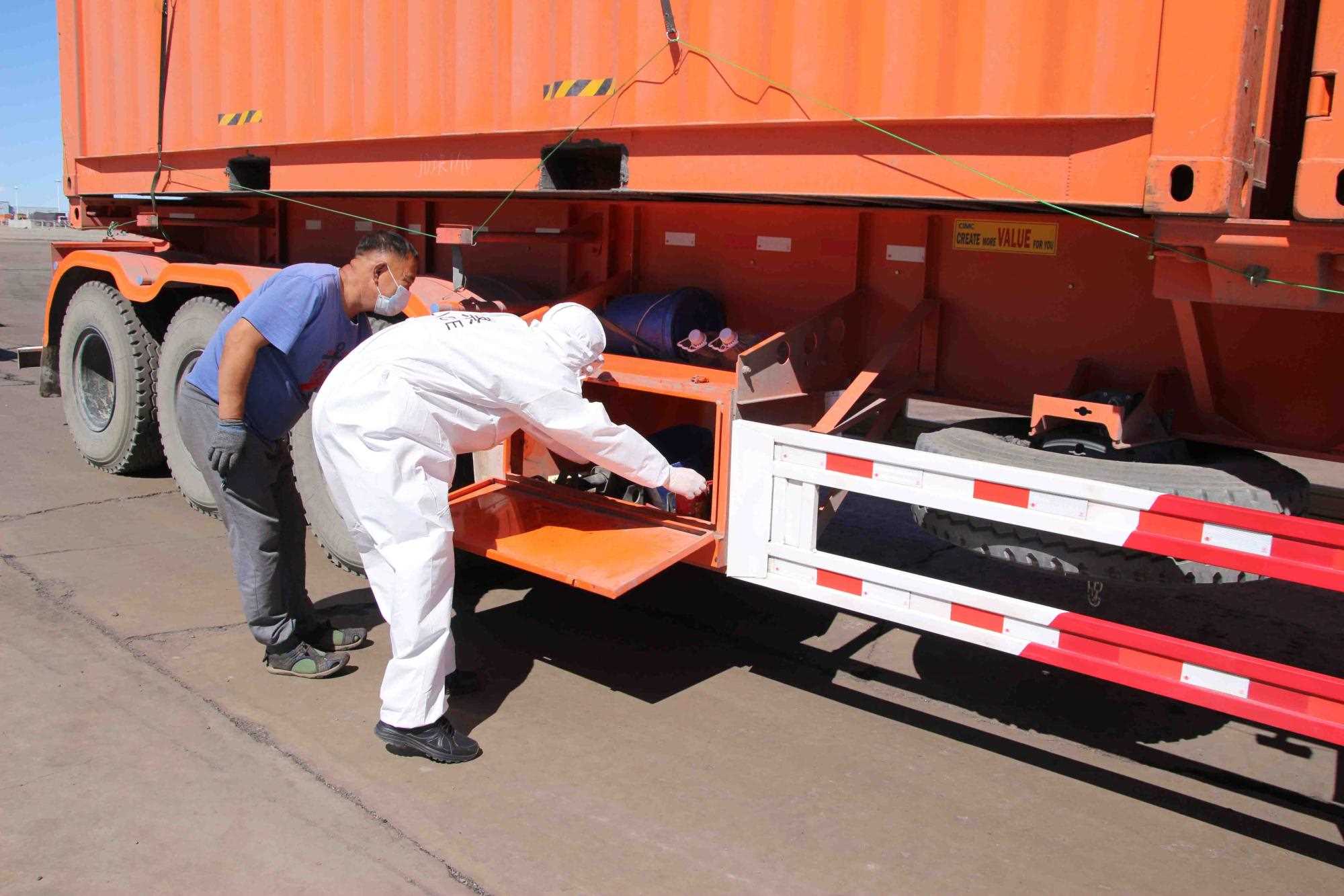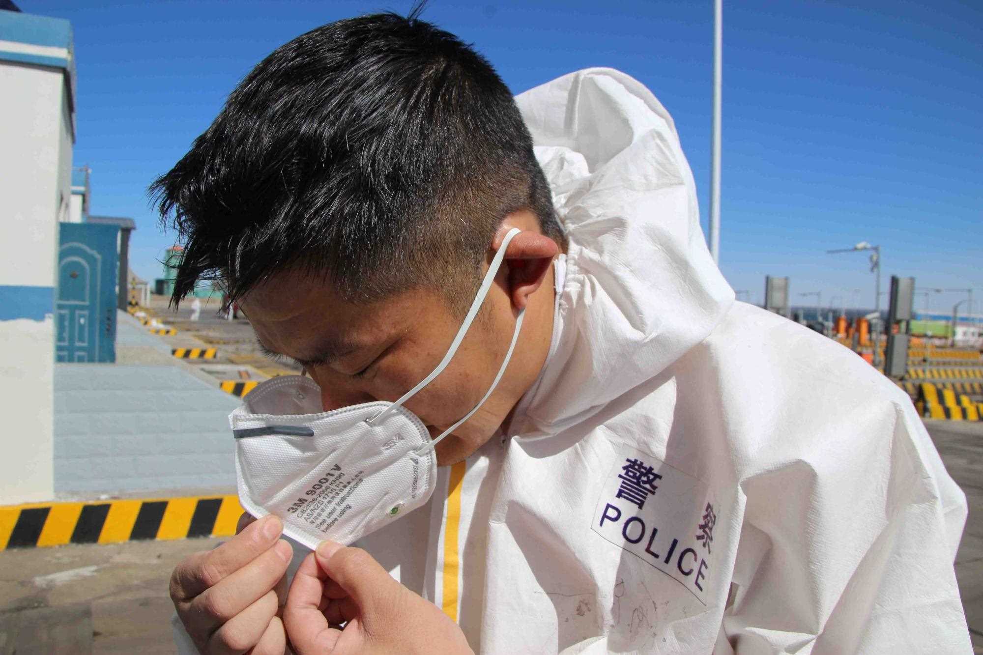 近期策克口岸的溫度持續(xù)增加至30攝氏度以上,而在通行的重型卡車,溫度還要更高,下午15點(diǎn)溫度計(jì)地表溫度測(cè)量最高可達(dá)40攝氏度。這無(wú)疑讓的查驗(yàn)工作更為繁重。更重要的是,由于疫情影響每名民警在查驗(yàn)期間都要穿上防護(hù)服,在高溫下,由于防護(hù)服是密閉的,防護(hù)服里仿佛成了蒸箱,用不了十分鐘,民警就會(huì)汗流浹背,防護(hù)服黏在身上又粘又癢,一班勤務(wù)近2個(gè)小時(shí),必須要等過了勤務(wù)才能休息,而民警還要完成車體的查驗(yàn)工作,包括工具箱、馬槽等處,絲毫不敢馬虎。