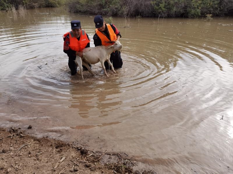 “請民警同志幫幫忙,我的羊群被困在河里了,這可是我的命根子?。 ?020年9月8日8時(shí)許,蘇泊淖爾邊境派出所一個(gè)報(bào)警電話打破了清晨的寧靜,來電的是內(nèi)蒙古額濟(jì)納旗蘇泊淖爾蘇木牧民布某。原來,夜里黑河漲水,他家的幾十只羊被困,望著身陷險(xiǎn)境的羊群,焦急的布某打通了派出所的報(bào)警電話。