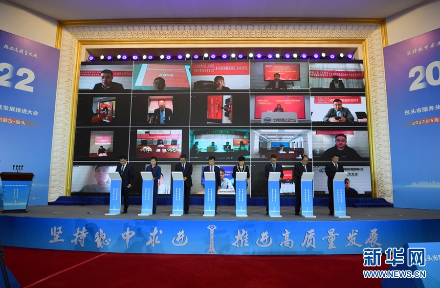 5月10日,包頭市服務業(yè)高質量發(fā)展推進大會網絡簽約儀式。新華網發(fā)(安吉斯 攝)