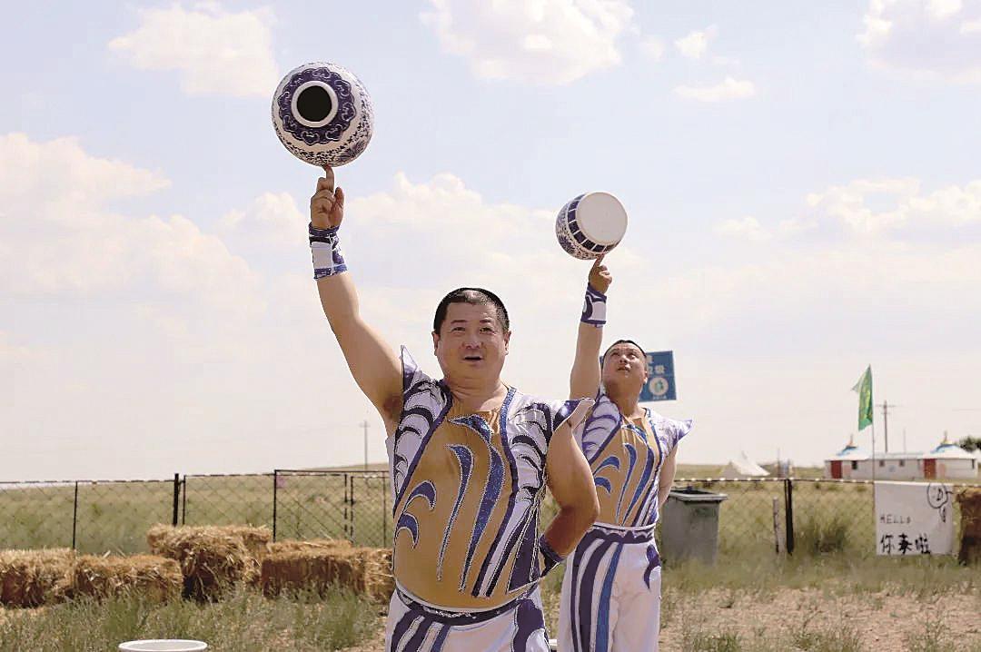 今年6月,北疆文化活動季——第二屆“中國雜技北疆行”系列活動走進達茂旗,將雜技舞臺搭建在草原深處,為達茂旗各族群眾獻上了一場精彩絕倫的藝術(shù)盛宴,在祖國北疆點燃了文化交融的璀璨燈火。來自全國多地頂尖院團的演員們不懼炎炎烈日,頂著30攝氏度的高溫一絲不茍地完成著演出。草場上,聞訊趕來的牧民們圍坐在一起,目不轉(zhuǎn)睛地欣賞著表演。當青花瓷壇在演員頸肩翻飛、靛藍花紋映著綠野藍天劃出驚險弧線,引發(fā)現(xiàn)場掌聲、歡呼聲不斷。