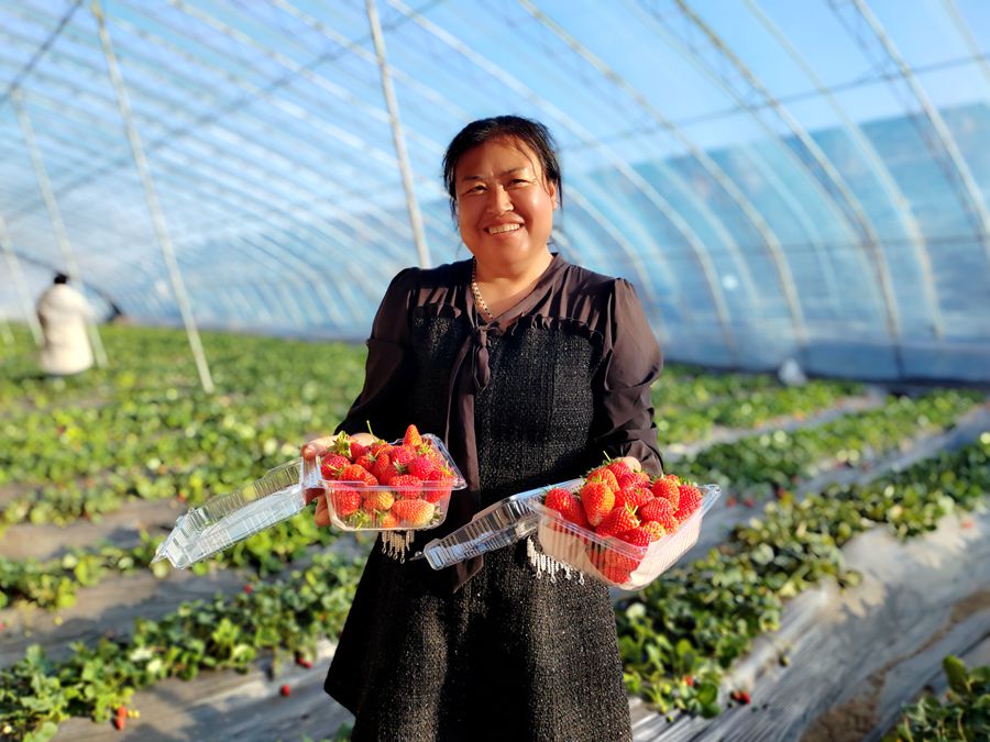 ??“從去年12月開始,草莓已進(jìn)入采摘期。盡管室外氣溫低至零下十幾度,但溫室內(nèi)的溫度卻能達(dá)到零上十幾度?!睋?jù)和平村禾旺園區(qū)種植戶江國(guó)林介紹,春節(jié)前后,不少游客帶著孩子前來(lái)采摘,他這里成了游客近郊游的熱門選擇。