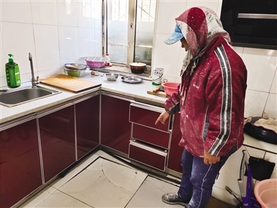 10月28日上午,記者再次來到阿木奈營村回訪,馬美蘭家和趙秀平家的暖氣片均已安裝,供熱良好。仍然有部分村民家的暖氣不熱,部分村民屋后的架空暖氣管道接口處漏水。村民馮翠梅苦惱地告訴記者,施工隊在她家房子后面安裝暖氣管道時挖開坑,下雨后坑內(nèi)積水滲漏到地基,導(dǎo)致她家廚房地基下沉。記者看到,下沉部分的大理石板已破碎,廚柜也有下沉。