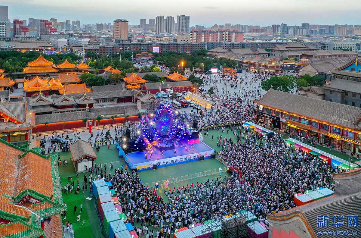 6月18日晚,2022年呼和浩特市“塞上老街音樂美食季”開幕式現(xiàn)場。新華網(wǎng)發(fā)(丁根厚攝)