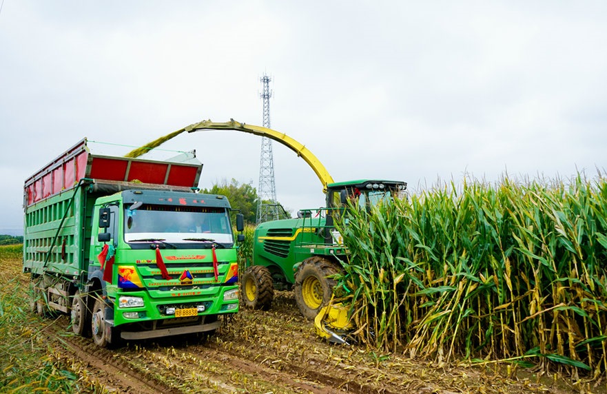 在土默特左旗察素齊鎮(zhèn)什兵地村,連片的青貯玉米長勢喜人,迎來收割季。