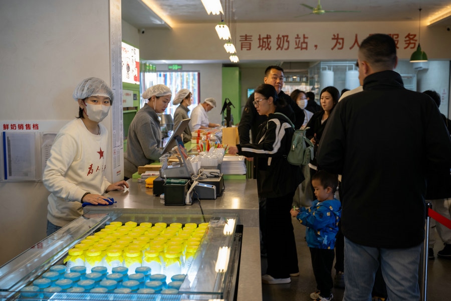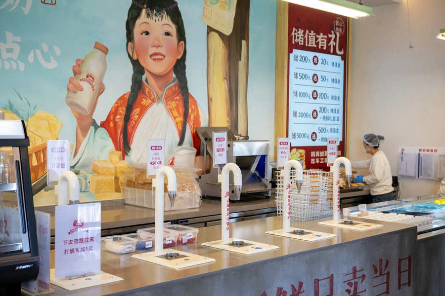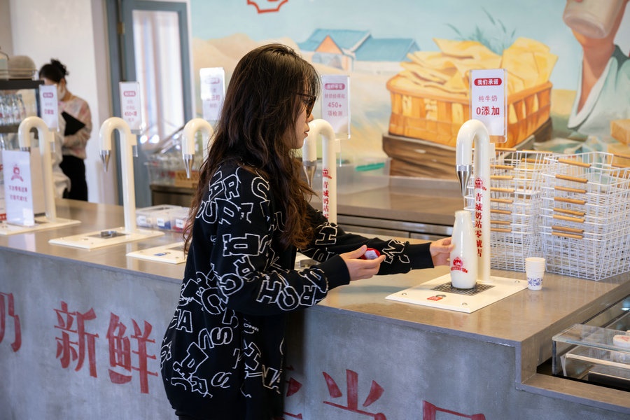 10月18日 呼和浩特青城奶站0號(hào)店 市民在享用牛奶