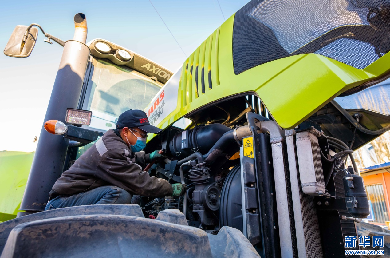 ??2月18日,在位于呼和浩特市玉泉區(qū)的一家農(nóng)機(jī)設(shè)備公司農(nóng)機(jī)具維修區(qū),工作人員在為當(dāng)?shù)氐霓r(nóng)戶檢修拖拉機(jī)。新華網(wǎng)發(fā)(丁根厚 攝)