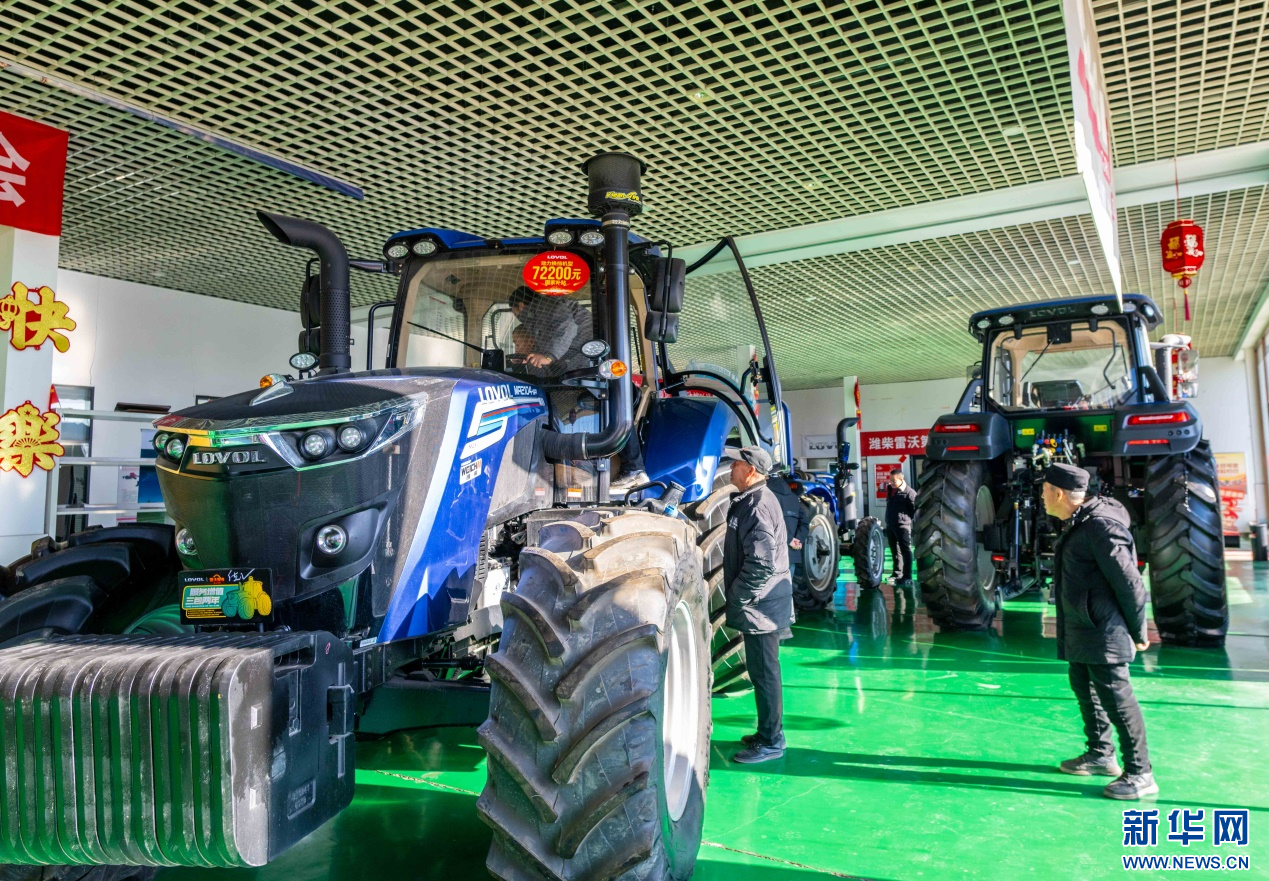 ??2月18日,在位于呼和浩特市玉泉區(qū)的一家農(nóng)機(jī)設(shè)備公司展銷大廳,農(nóng)戶在咨詢選購(gòu)國(guó)家補(bǔ)貼拖拉機(jī)。新華網(wǎng)發(fā)(丁根厚 攝)