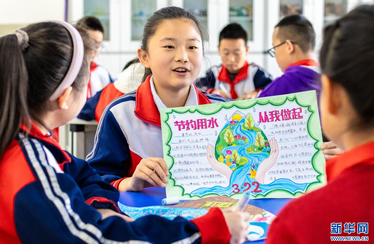 ??3月20日,呼和浩特市玉泉區(qū)石東路小學(xué)學(xué)生在繪制愛(ài)水護(hù)水手抄報(bào)。新華網(wǎng)發(fā)(丁根厚 攝)