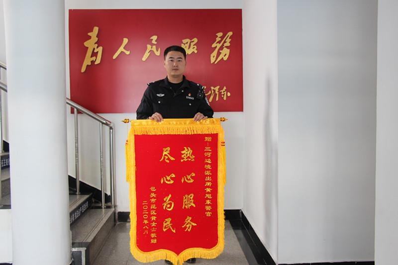 8月31日,三河邊境派出所值班室收到一個來自2000公里之外的包裹,打開包裹一看,里面裝著一面繡著“熱心服務(wù),盡心為民”的錦旗。錦旗的背后,是一個暖心的故事。7月31日,包頭市游客黃先生到派出所報警稱在白樺林景區(qū)游玩時將手提包丟失,包內(nèi)裝有現(xiàn)金和一行三人的身份證件,情緒非常激動,民警一邊安撫游客情緒,一邊組織警力進(jìn)行尋找,不到20分鐘就將游客手提包找到并歸還,游客緊緊握著民警的手,轉(zhuǎn)悲為喜。