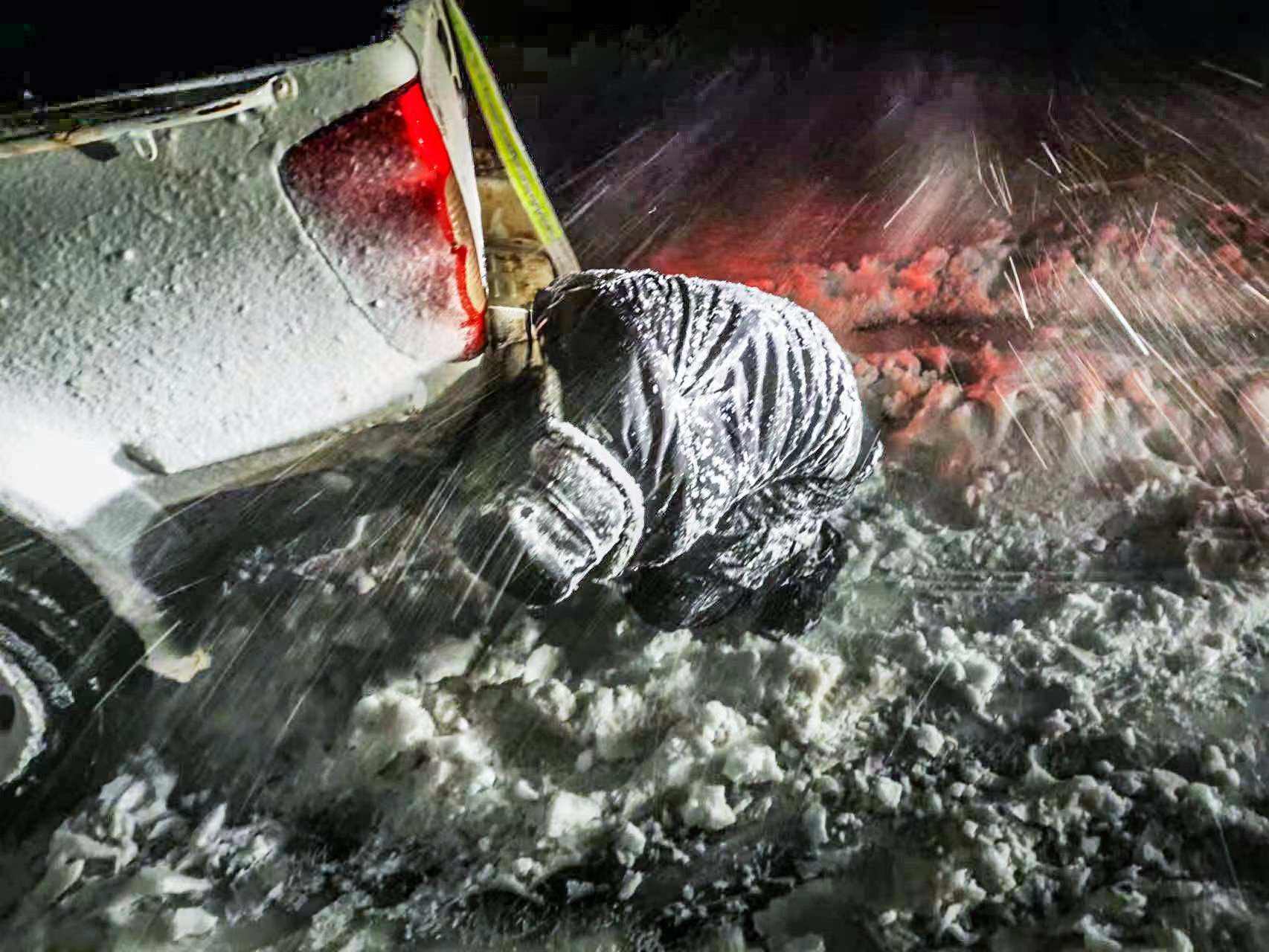 連日來,受新一輪寒潮影響,內(nèi)蒙古呼倫貝爾市多地區(qū)遭受“白毛風(fēng)”天氣,道路積雪嚴(yán)重,惡劣天氣持續(xù)時(shí)間達(dá)10個(gè)小時(shí)以上。26日23時(shí)許,在滿洲里通往海拉爾G10高速路多輛車輛拋錨被困,呼倫貝爾邊境管理支隊(duì)東烏珠爾邊境派出所接到被困群眾報(bào)警后,迅速趕往現(xiàn)場,經(jīng)過數(shù)小時(shí)的風(fēng)雪奮戰(zhàn),成功救援被困車輛12臺(tái)次,解救受困群眾34人次。(楊智超 呂昊俊)