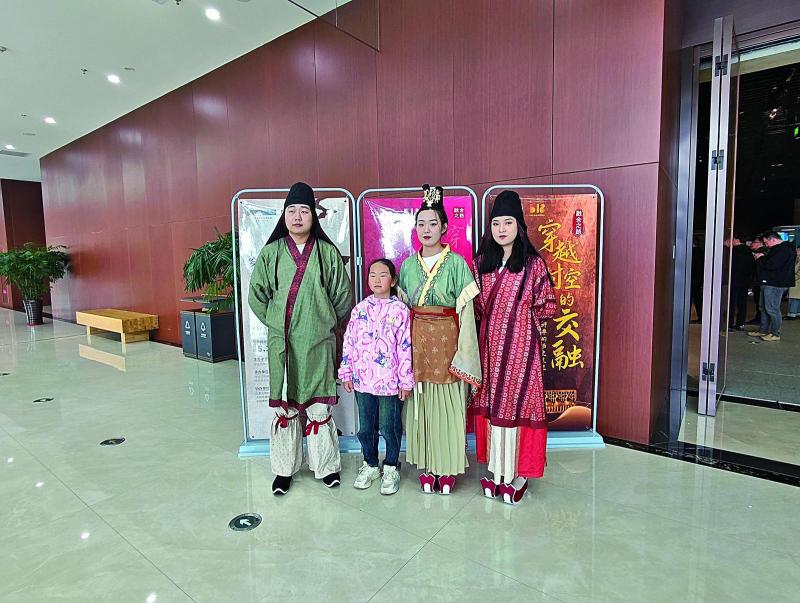 呼倫貝爾歷史博物館工作人員衣著北魏時(shí)期服飾與現(xiàn)場市民拍照互動(dòng)