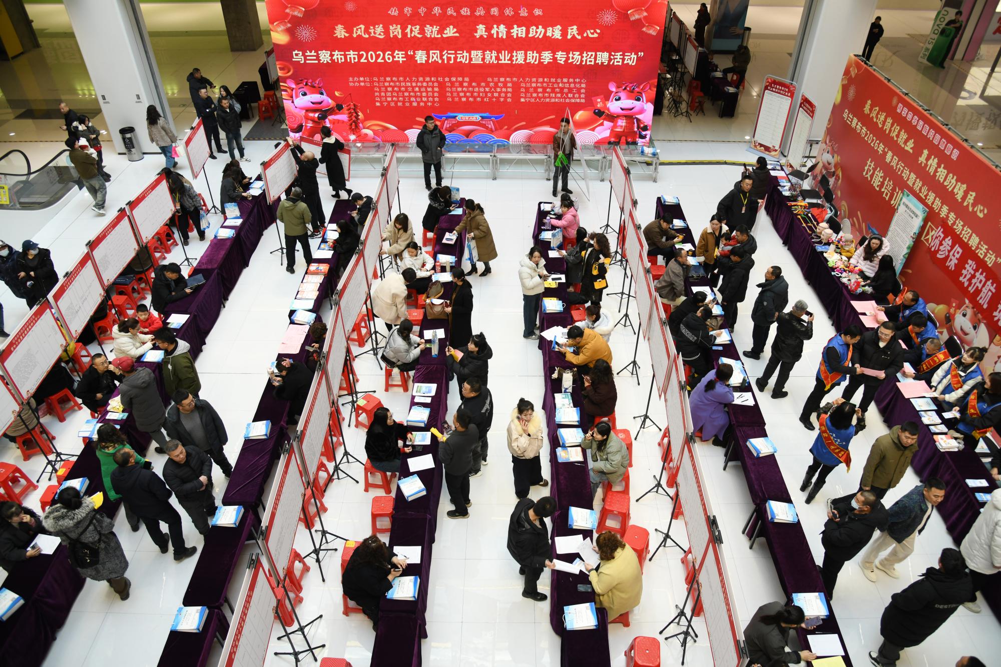 2月23日,以“春風(fēng)送崗促就業(yè) 真情相助暖民心”為主題的烏蘭察布市2026年春風(fēng)行動(dòng)暨就業(yè)援助季專場招聘活動(dòng)在集寧區(qū)維多利摩爾城舉行。