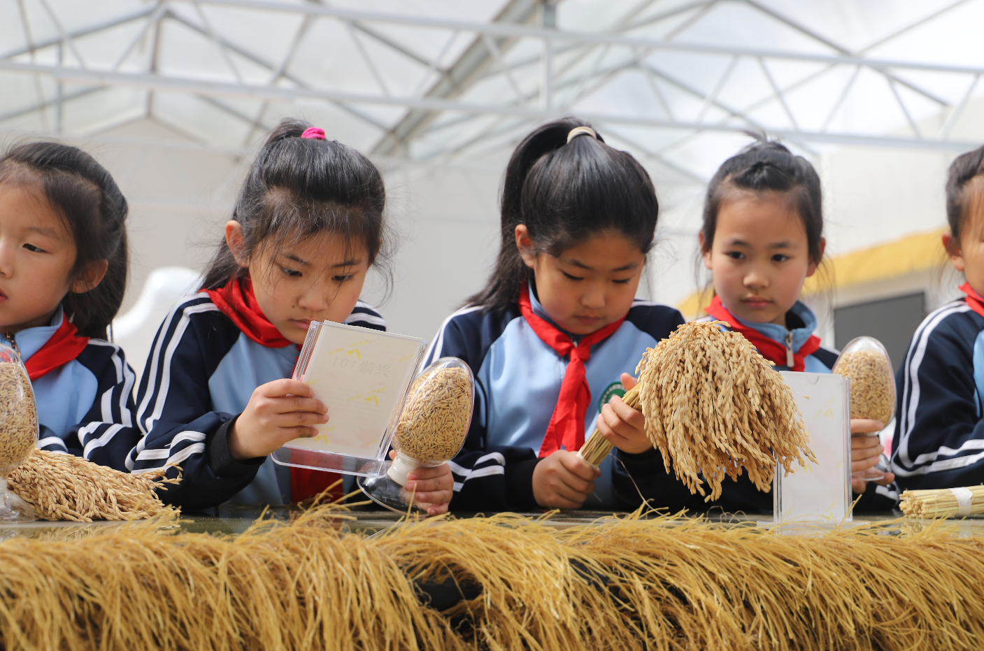 聆聽(tīng)講解員老師講述大米生長(zhǎng)過(guò)程