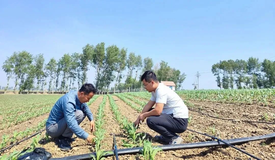 農(nóng)技人員和種糧大戶(hù)交流淺埋滴灌水肥一體化技術(shù)