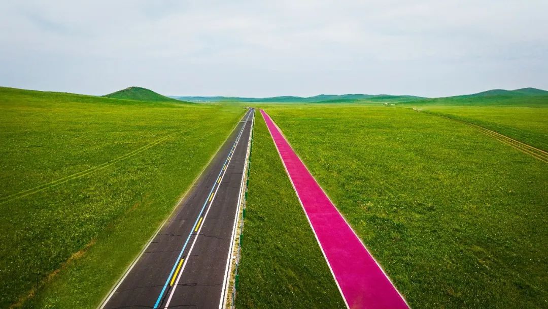 此外,西烏旗草原“99號公路”新增了14.292公里騎行路,鋪就以“烏珠穆沁”音譯內涵(摘葡萄的人)為靈感的葡萄紫路面,是騎行愛好者與游客打卡體驗草原風情的絕佳之地。草原“99號公路”起點的心形停車服務區(qū)預計2025年7月投用,發(fā)光Logo項目同步啟動。