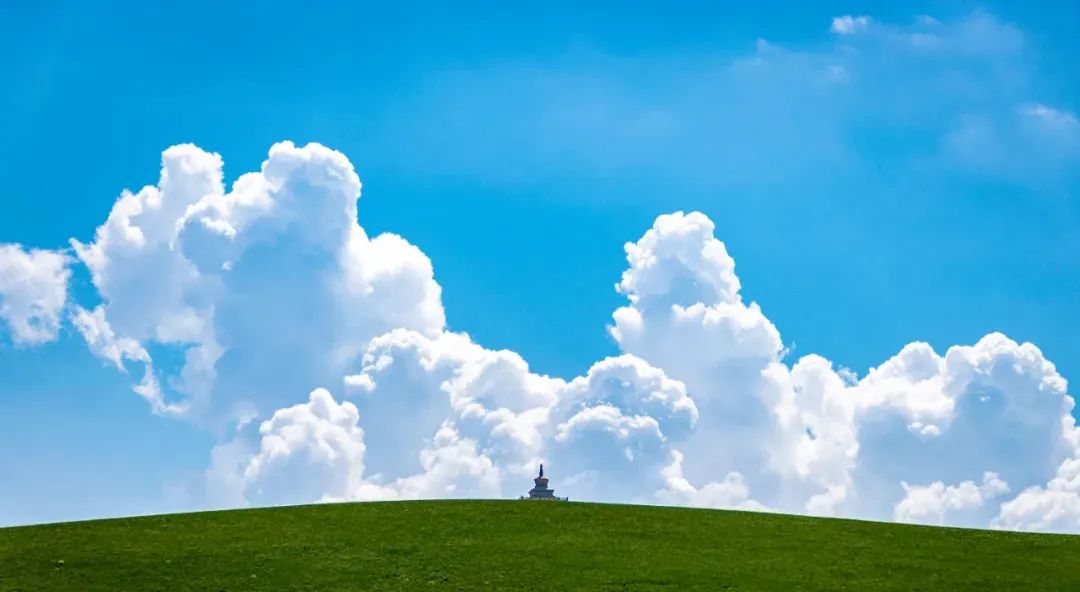 瞭望山上遙望草原,層層山巒望不斷。游客可徒步登山,有寬厚的臺階直通山頂,當你登上最高點,感受四野空曠的幽靜,仿佛真的可以瞭望千里外的風光。