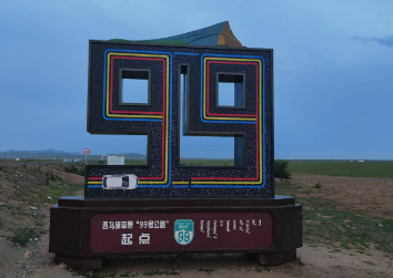 99號公路起點處設有醒目的標志性Logo,是游客打卡留念的熱門點位。其建筑風格融合了蒙古族特色元素,色彩鮮艷、造型獨特,與廣袤無垠的草原相得益彰。