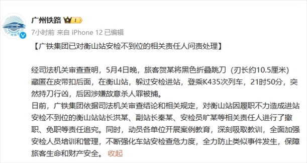 ·K435列車命案嫌犯被鑒定為精神病人,法院決定強制醫(yī)療。廣鐵集團:已對衡山站安檢不到位的相關(guān)責任人問責處理。