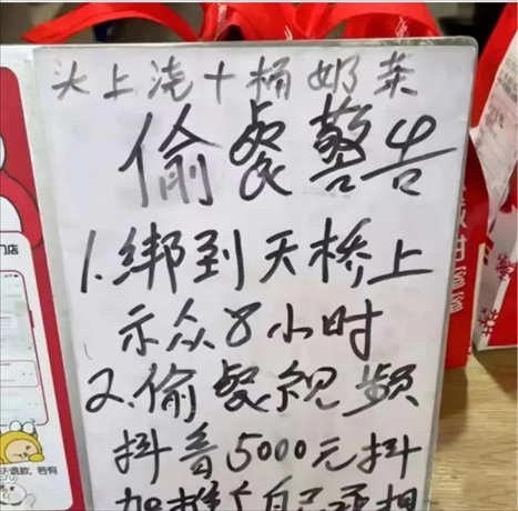 ·蜜雪冰城稱要將偷餐者綁天橋示眾8小時?涉事門店回應:只是寫得嚴重一點,嚇唬嚇唬偷餐者,并沒有實行過。