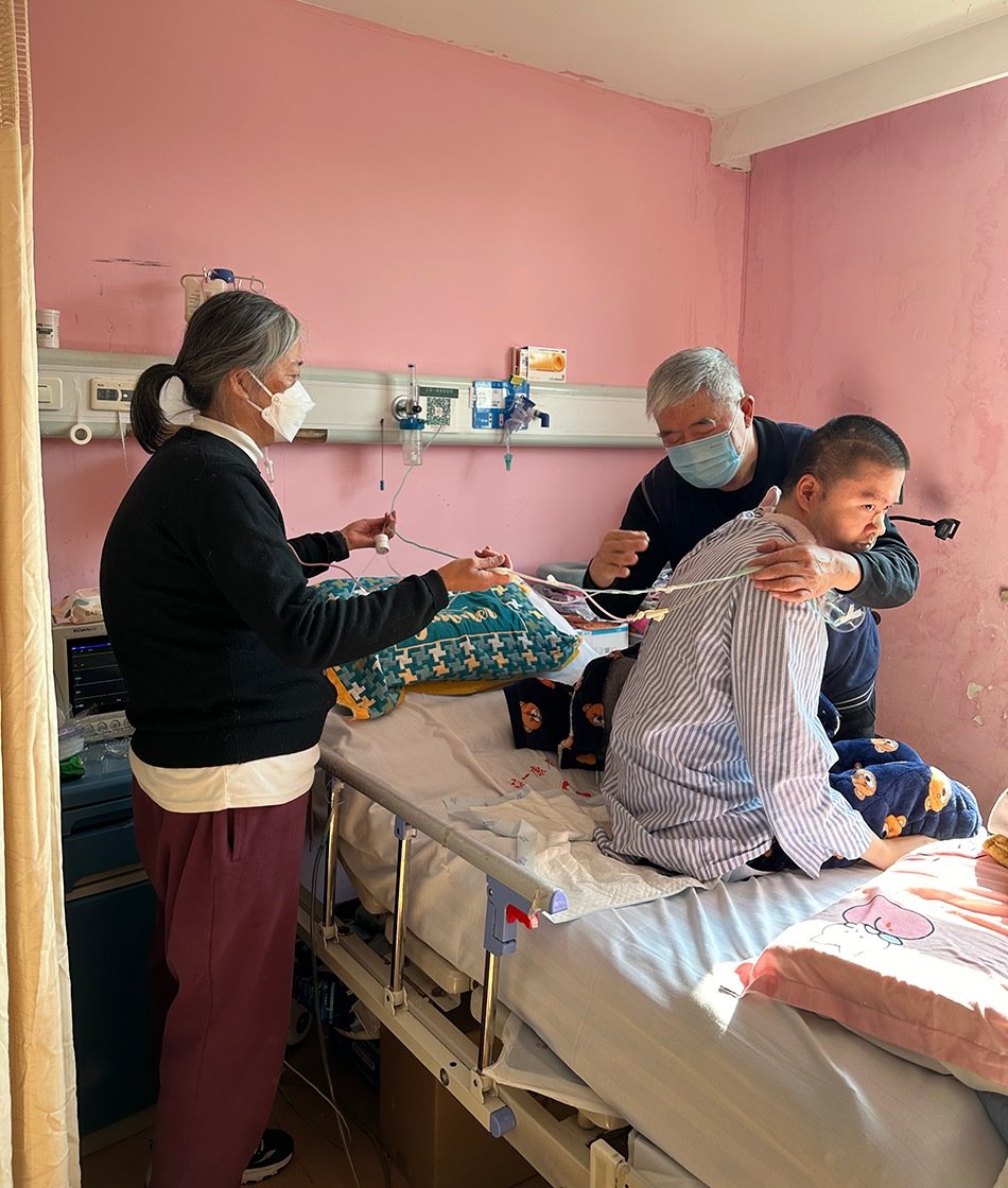 張昌碩身高一米八幾,張宏銀和鄭建英需要合力才能把他從床上推起來,為了省錢,除了需要專業(yè)醫(yī)護(hù)人員進(jìn)行的康復(fù)項目,比如針灸,或者要用理療設(shè)備,他們大多自己給孩子做康復(fù)——按摩他的全身,包括手指腳趾,每一個地方都不能錯過。