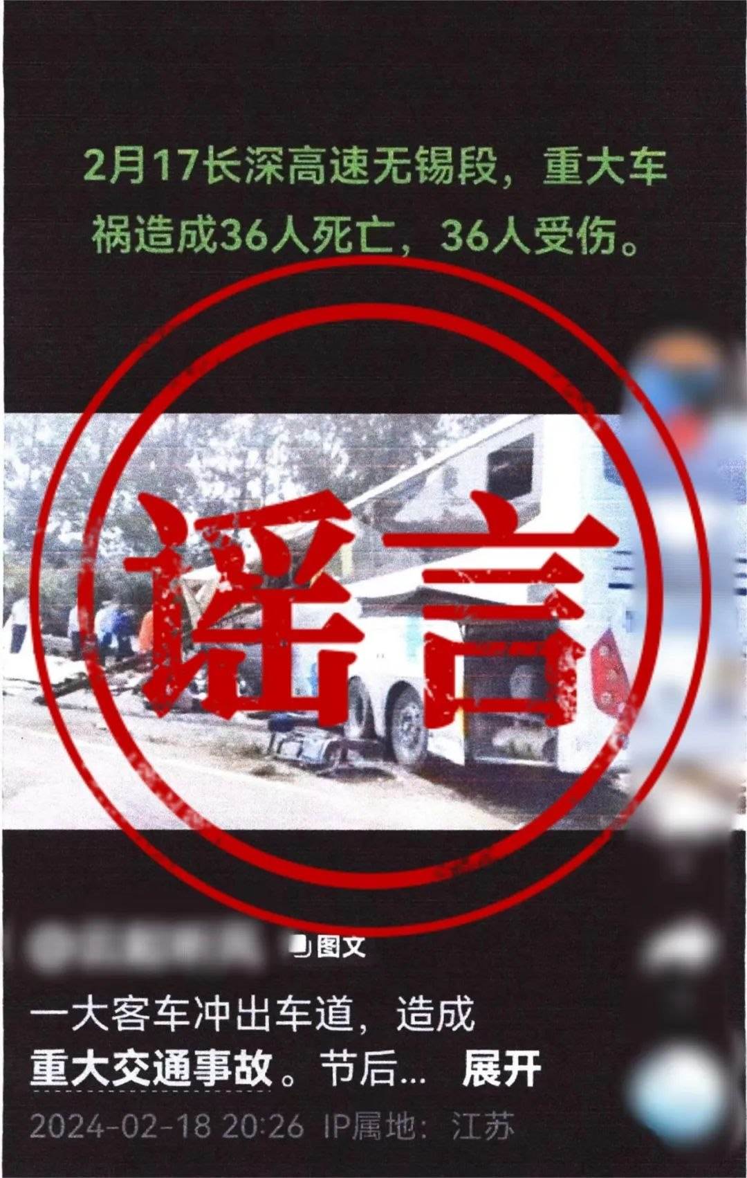 徐州程某編造“長深高速無錫段發(fā)生重大車禍”網(wǎng)絡(luò)謠言案。今年2月18日,程某為博取關(guān)注,通過下載2019年某交通事故現(xiàn)場圖片并配以文字、修改時間方式制作短視頻,在網(wǎng)絡(luò)平臺散布“2月17日長深高速無錫段發(fā)生重大車禍”謠言,造成不良社會影響,擾亂公共秩序。程某已被公安機關(guān)行政處罰。