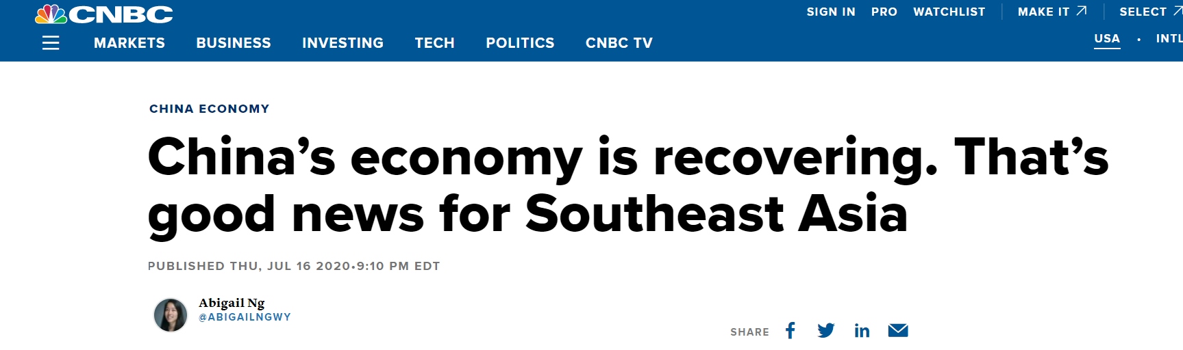 美國(guó)消費(fèi)者新聞與商業(yè)頻道(CNBC)17日發(fā)表文章,題為《中國(guó)經(jīng)濟(jì)正在復(fù)蘇,這對(duì)東南亞是個(gè)好消息》。文中指出,作為東盟出口商品最多的國(guó)家,中國(guó)經(jīng)濟(jì)穩(wěn)步增長(zhǎng)成為東南亞國(guó)家“關(guān)鍵資產(chǎn)”。“盡管還有許多挑戰(zhàn),這一增長(zhǎng)重新點(diǎn)燃了中國(guó)經(jīng)濟(jì)可以幫助其他國(guó)家復(fù)蘇的希望”,華僑銀行(OCBC Bank)經(jīng)濟(jì)學(xué)家維蘭托(Wellian Wiranto)16日表示。