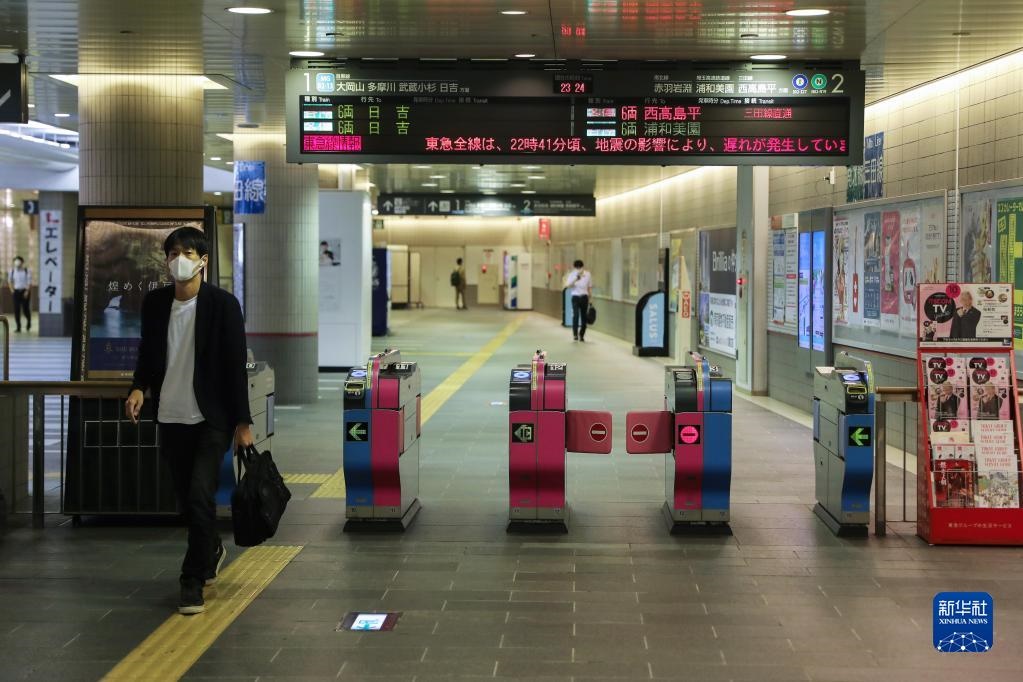 10月7日,在日本東京,一個車站的電子屏幕上顯示電車線路受地震影響延遲。據(jù)日本氣象廳消息,日本千葉縣西北部7日晚發(fā)生6.1級地震,東京地區(qū)震感強(qiáng)烈。新華社記者杜瀟逸攝