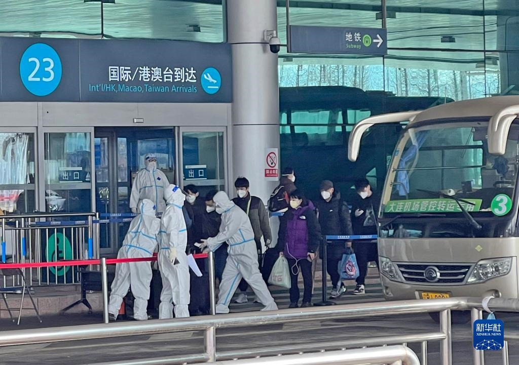 3月14日,乘坐臨時航班抵達(dá)大連周水子國際機(jī)場的中國公民準(zhǔn)備前往隔離酒店。新華社發(fā)(大連機(jī)場提供)