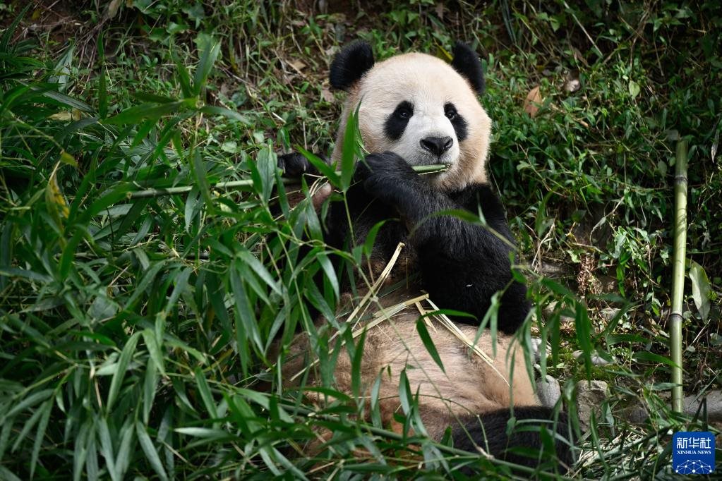 10月17日,在中國(guó)大熊貓保護(hù)研究中心雅安基地,大熊貓“京京”在吃竹子。新華社記者 胥冰潔 攝