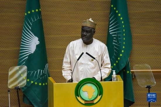 2月18日,在埃塞俄比亞亞的斯亞貝巴,非盟委員會主席法基在非盟第36屆首腦會議上發(fā)表講話。