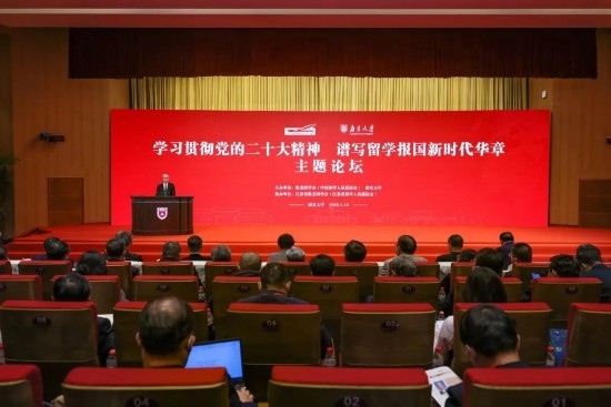 譚鐵牛代表南京大學感謝社會各界的關心和支持。他表示,黨的二十大擘畫了全面建成社會主義現(xiàn)代化強國的宏偉藍圖,全體南大人將以本次論壇為契機,大力弘揚留學報國的光榮傳統(tǒng),心系“國家事”,肩扛“國家責”,想國家之所想,急國家之急,應國家之所需,努力把南大打造成為海外留學歸國人才的向往之地、聚集之地、建功立業(yè)之地,為強化國家戰(zhàn)略科教力量、加快建設世界重要人才中心和創(chuàng)新高地提供南大支撐,為全面建設社會主義現(xiàn)代化國家、全面推進中華民族偉大復興作出南大貢獻。