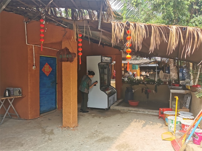 “山蘭酒已經(jīng)賣光了,只有黃姜糯米酒了?!蓖跚镦脤?duì)前來問詢的村民解釋道。從前,王秋婷一家的經(jīng)濟(jì)來源主要依靠種茶和采茶。隨著毛納村的游客越來越多,王秋婷將自家庭院進(jìn)行改造,開起了酒坊和小商店,主要售賣自己釀制的山蘭酒和糯米酒、茶葉、椰子等農(nóng)特產(chǎn)品。“酒坊和商店的生意都還不錯(cuò)?!蓖跚镦眯χ鴮?duì)記者說。