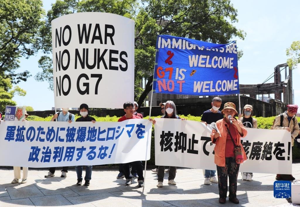 “不做戰(zhàn)爭幫兇”“不要G7”……14日,200多名日本民眾舉著各式標(biāo)語,在廣島和平紀(jì)念公園原子彈轟炸遺址舉行集會,強(qiáng)烈抗議七國集團(tuán)(G7)峰會將在廣島召開。