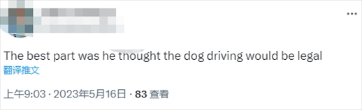還有網(wǎng)友說(shuō),“最棒的地方是他覺(jué)得狗開(kāi)車是合法的”。