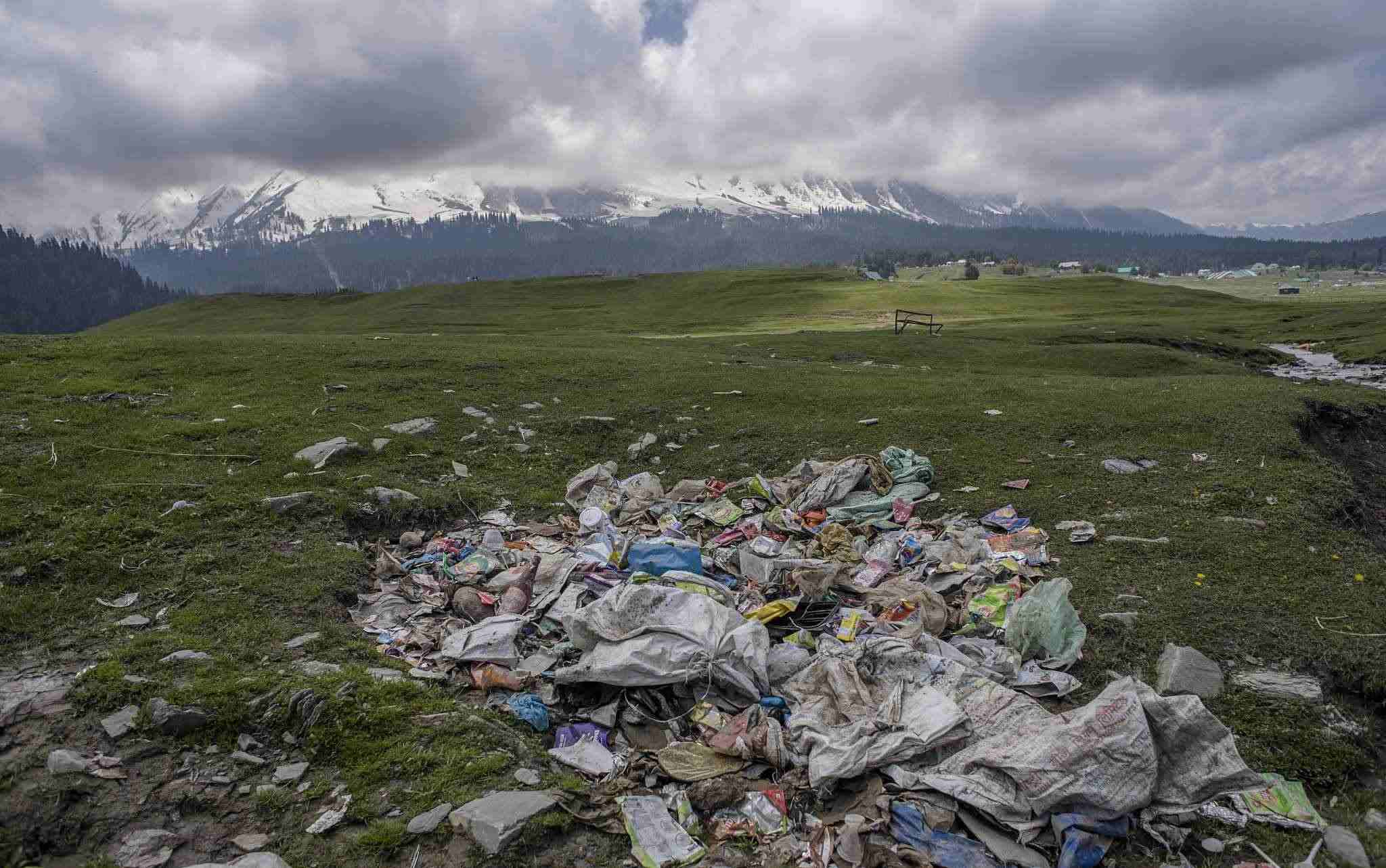 古爾瑪格,著名的滑雪勝地。在夏天,這個(gè)勝地?cái)D滿(mǎn)了避暑的游客并留下了大量的垃圾。垃圾的堆積對(duì)高山生態(tài)造成了嚴(yán)重威脅,也對(duì)冰川溪水造成了嚴(yán)重威脅。盡管指示牌提醒人們禁止攜帶塑料,但對(duì)攜帶食物和水沒(méi)有限制。環(huán)保人士警告說(shuō),古爾瑪格及其周邊地區(qū)的到處都是被丟棄的塑料垃圾。