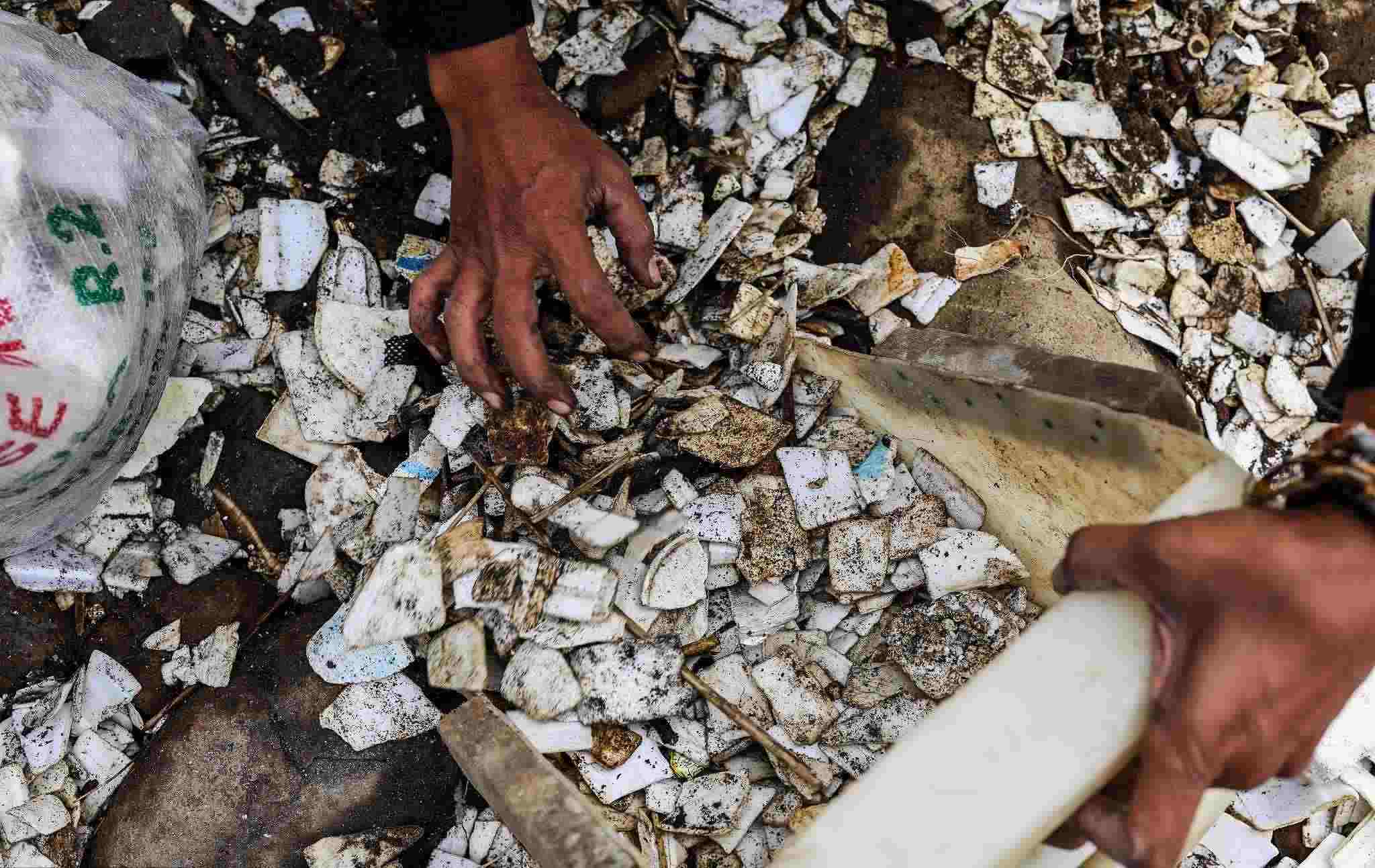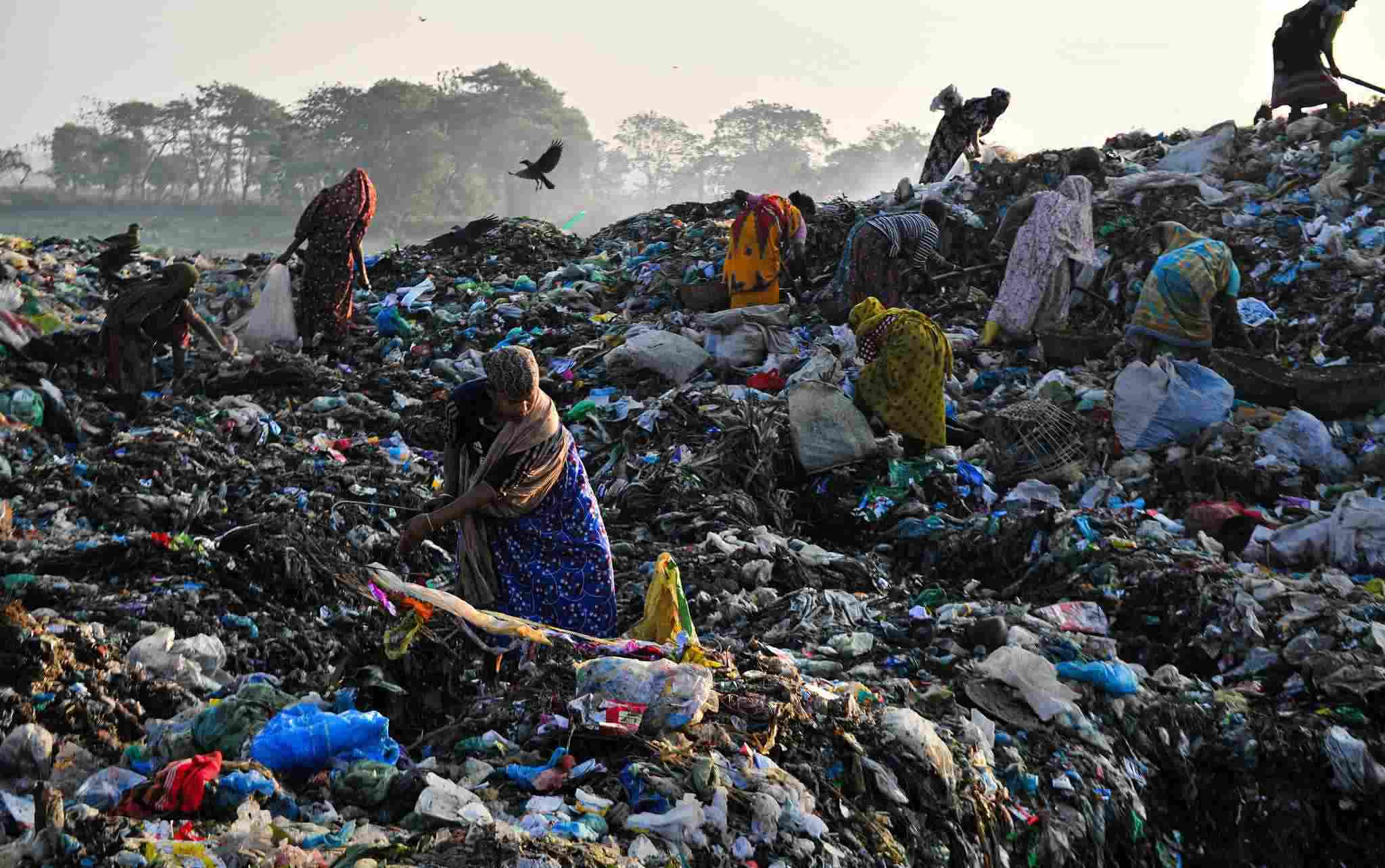 當(dāng)?shù)貢r(shí)間2023年1月2日,孟加拉國(guó)錫爾赫特,工人們?cè)谝粋€(gè)有毒廢物傾倒場(chǎng)工作。
