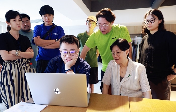 這張照片美好動人,充滿著彼此尊重、珍愛的師生情誼。能夠精準地捕捉到這樣稍縱即逝的人物情感交流,一方面離不開老師的扮演者,中國白蘭地首席大師張葆春在劇中的本色出演,另一方面也顯然得益于拍攝之前田雨峰進行的背景調查和資料準備工作。向張葆春老師請教釀酒知識,了解“學生”文文(錢冬旎飾)對角色和人物關系的理解,這些細致、瑣碎甚至看起來不甚必要的準備過程,是最終劇照能在觀眾面前精準呈現(xiàn)、動人表達的必要條件。