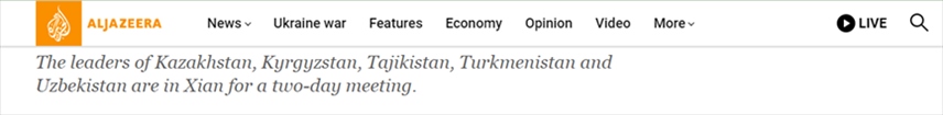 卡塔爾半島電視臺網(wǎng)站18日報道稱,中國-中亞峰會在中國西安舉行,為期兩天的峰會由中國國家主席習(xí)近平主持,哈薩克斯坦、吉爾吉斯斯坦、塔吉克斯坦、土庫曼斯坦和烏茲別克斯坦五國領(lǐng)導(dǎo)人應(yīng)邀參會,中亞五國都是共建“一帶一路”倡議的重要參與者。報道指出,此次峰會對中亞地區(qū)而言是一個實現(xiàn)經(jīng)濟(jì)多元化發(fā)展的機(jī)會。