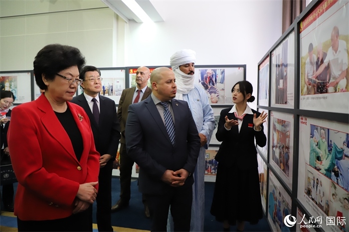 與會嘉賓參觀“60年中國援阿醫(yī)療隊圖片展”。人民網記者 王傳寶攝