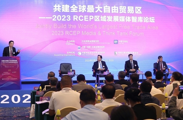 人民網(wǎng)???月21日電 (記者苑基榮)《區(qū)域全面經(jīng)濟(jì)伙伴關(guān)系協(xié)定》(以下簡(jiǎn)稱RCEP)正式生效實(shí)施一年多來,其促進(jìn)區(qū)域貿(mào)易投資增長(zhǎng)與經(jīng)濟(jì)復(fù)蘇的紅利不斷釋放。5月21日,中共海南省委宣傳部、中國(guó)日?qǐng)?bào)社、中國(guó)(海南)改革發(fā)展研究院在??诠餐鬓k“共建全球最大自由貿(mào)易區(qū)——2023 RCEP區(qū)域發(fā)展媒體智庫(kù)論壇”。來自中國(guó)、韓國(guó)、日本、新加坡、菲律賓、老撾、緬甸、柬埔寨、馬來西亞、印度尼西亞、澳大利亞、英國(guó)等國(guó)家的主流媒體、智庫(kù)人士以及國(guó)際組織、駐華使館官員和企業(yè)界共450余位代表參加本次論壇,共同圍繞“共建全球最大自由貿(mào)易區(qū)”分享觀點(diǎn)、交流思想,為推動(dòng)區(qū)域交流合作積極建言獻(xiàn)策。
