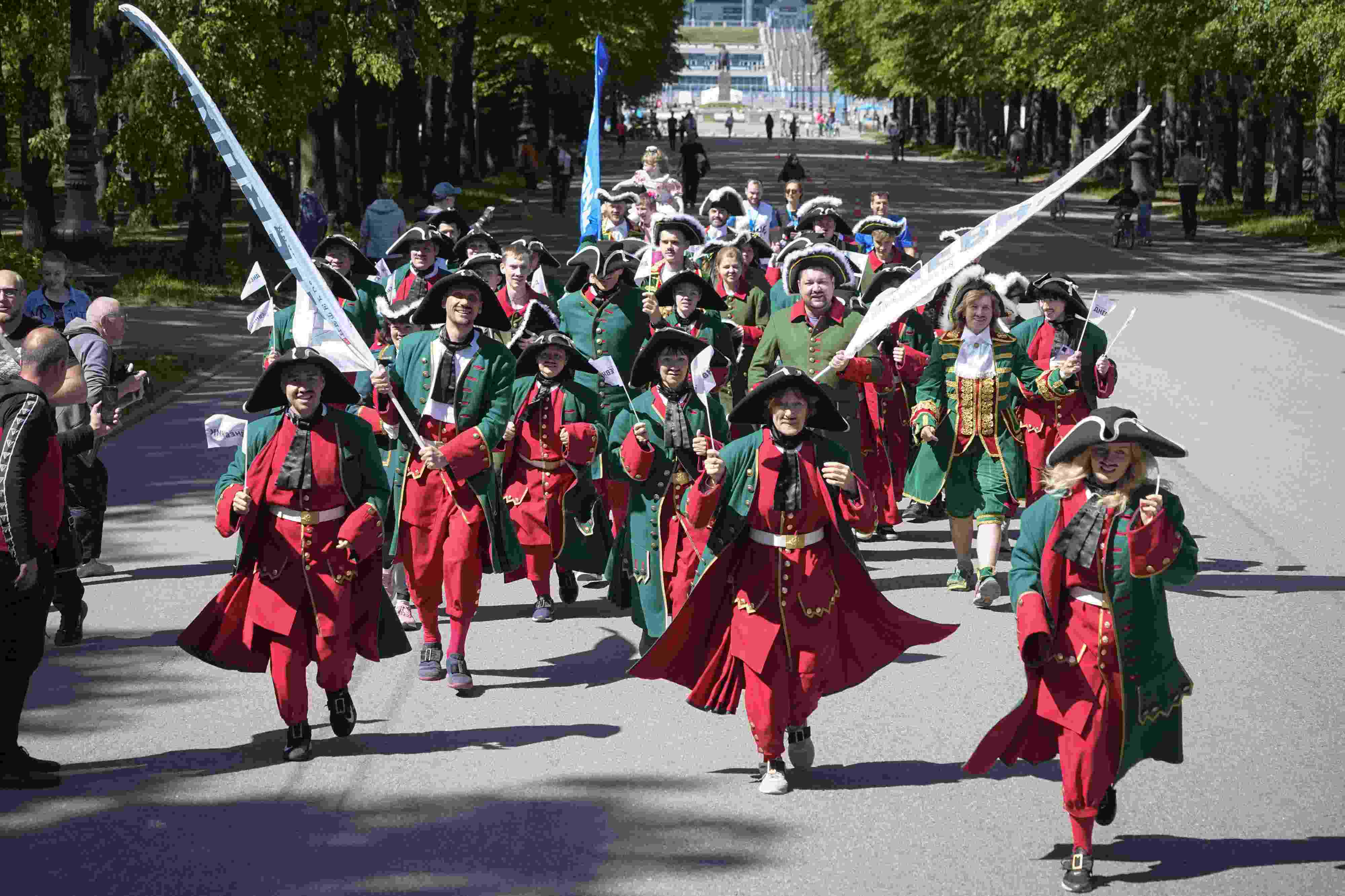 當(dāng)?shù)貢r(shí)間2023年5月28日,俄羅斯圣彼得堡,人們身著傳統(tǒng)服飾慶祝圣彼得堡建城320周年。 視覺中國(guó)