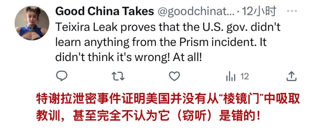 這條AI視頻下方的評論區(qū)顯示,對于美國“竊聽成癮”、“監(jiān)控成性”的惡習(xí),網(wǎng)友洞若觀火: