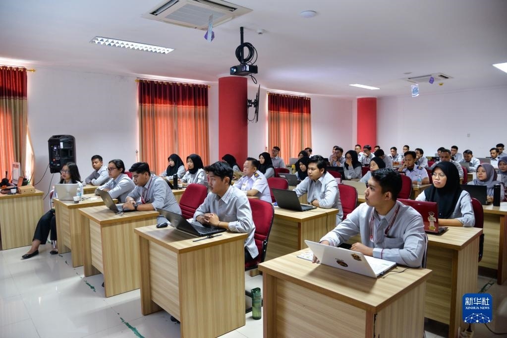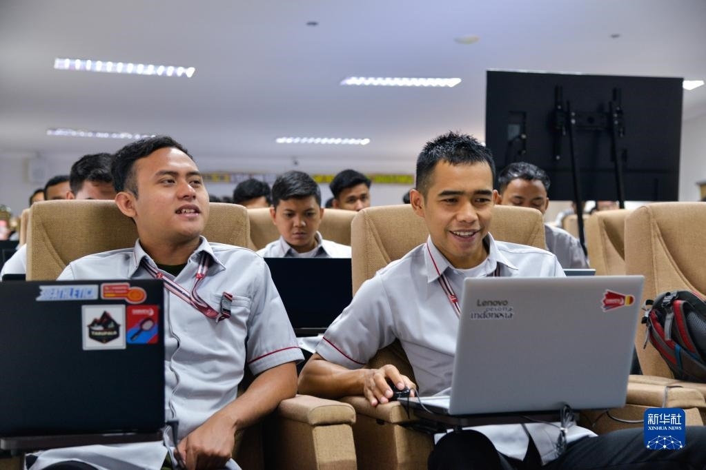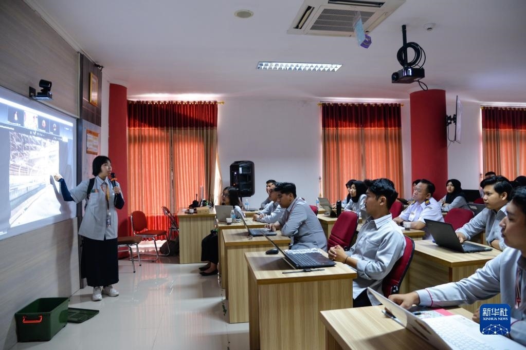 6月7日,在位于印度尼西亞茉莉芬市的印尼鐵路理工學(xué)院,學(xué)員們參加雅萬高鐵應(yīng)急值守人員培訓(xùn)。