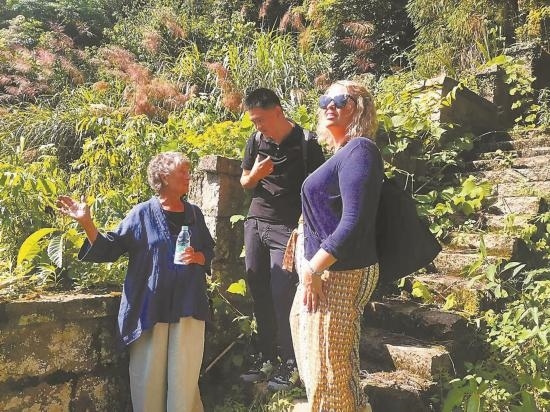 外國友人們這些年陸續(xù)找到了祖輩在鼓嶺生活的老屋舊址,離不開鼓嶺“80后”村民郭慶的幫忙。他通過照片比對、實地勘探,確認了多處舊址?!爱斈?,鼓嶺人用開放、包容的態(tài)度接納了外國僑民,雙方結下了深厚情誼?!惫鶓c說,在鼓嶺百年郵局旁有一口水井,上面刻著“外國本地公眾水井”,見證了當?shù)卮迕窈屯鈬鴥S民共飲一口井的歲月,是雙方相互尊重和諧共生的縮影。