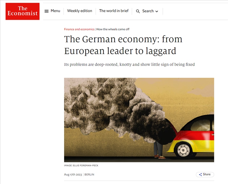 英國《經(jīng)濟學(xué)人》8月17日刊文指出,多年來,德國在傳統(tǒng)工業(yè)領(lǐng)域的優(yōu)異表現(xiàn),掩蓋其對新工業(yè)投資的缺乏。自滿和對財政審慎的癡迷導(dǎo)致公共投資太少??傮w而言,德國信息技術(shù)投資占GDP的比重還不到美國和法國的一半。除此之外,還有不斷惡化的地緣政治、減碳難度以及人口老化帶來的痛苦。