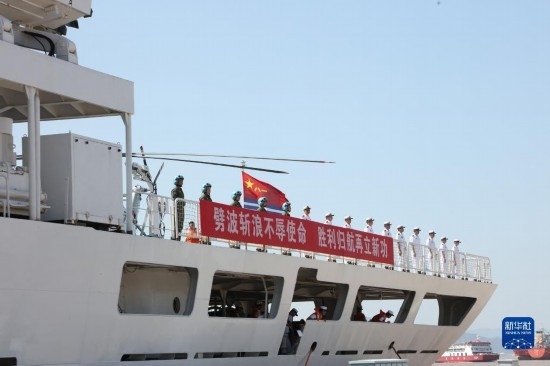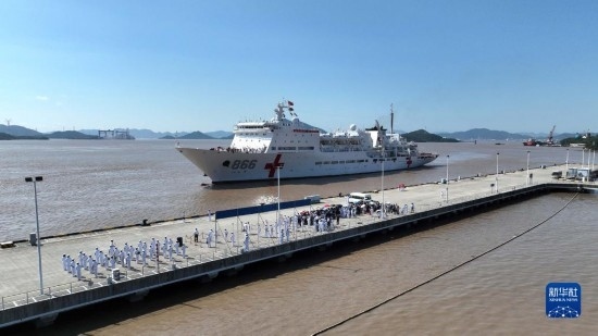 9月19日,執(zhí)行“和諧使命-2023”任務(wù)的海軍“和平方舟”號(hào)醫(yī)院船順利返回浙江舟山母港。新華社發(fā)(桂江波 攝)