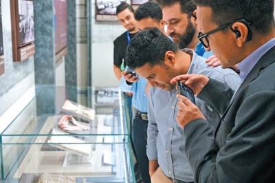 阿拉伯國(guó)家外交官在中共一大紀(jì)念館的展品前駐足觀看。方盈眾攝