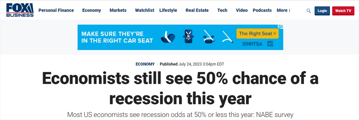 據(jù)美國《福克斯新聞網(wǎng)》報道,美國商業(yè)經(jīng)濟(jì)協(xié)會發(fā)布的一項(xiàng)新調(diào)查,絕大多數(shù)商業(yè)經(jīng)濟(jì)學(xué)家仍然認(rèn)為美國經(jīng)濟(jì)今年陷入衰退的可能性為50%。